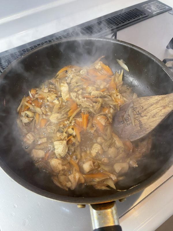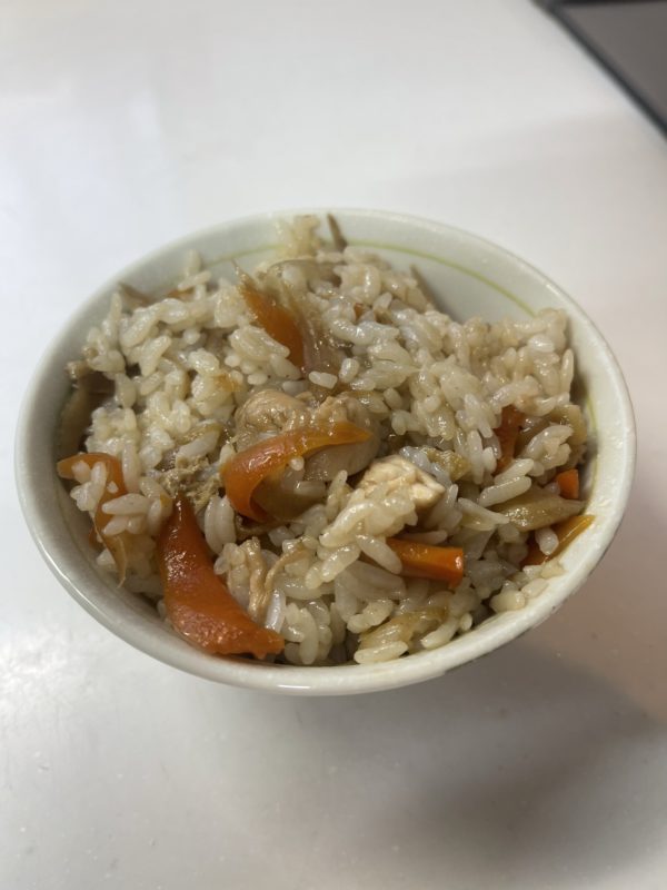 ごぼうとにんじんとかしわの「混ぜご飯」をつくりました。
