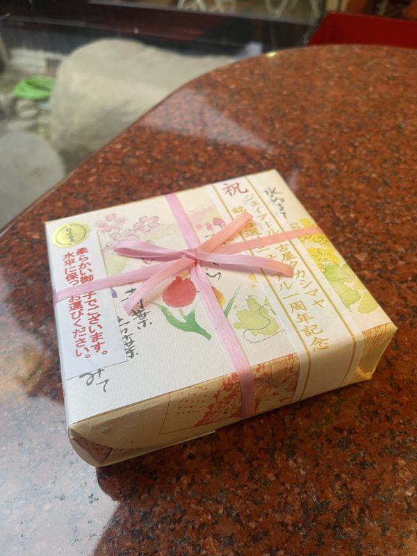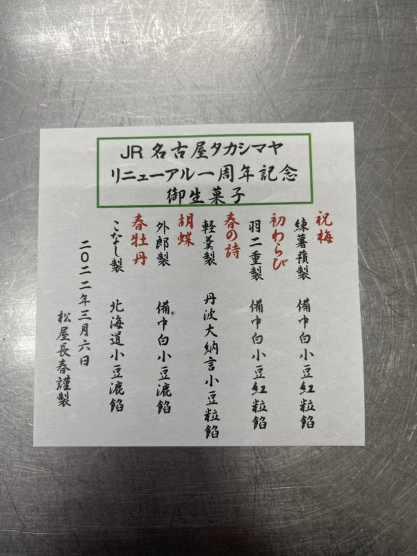 ジェイアール名古屋タカシマヤの銘菓百選リニューアル1周年記念の特別包装でご用意いたしました。