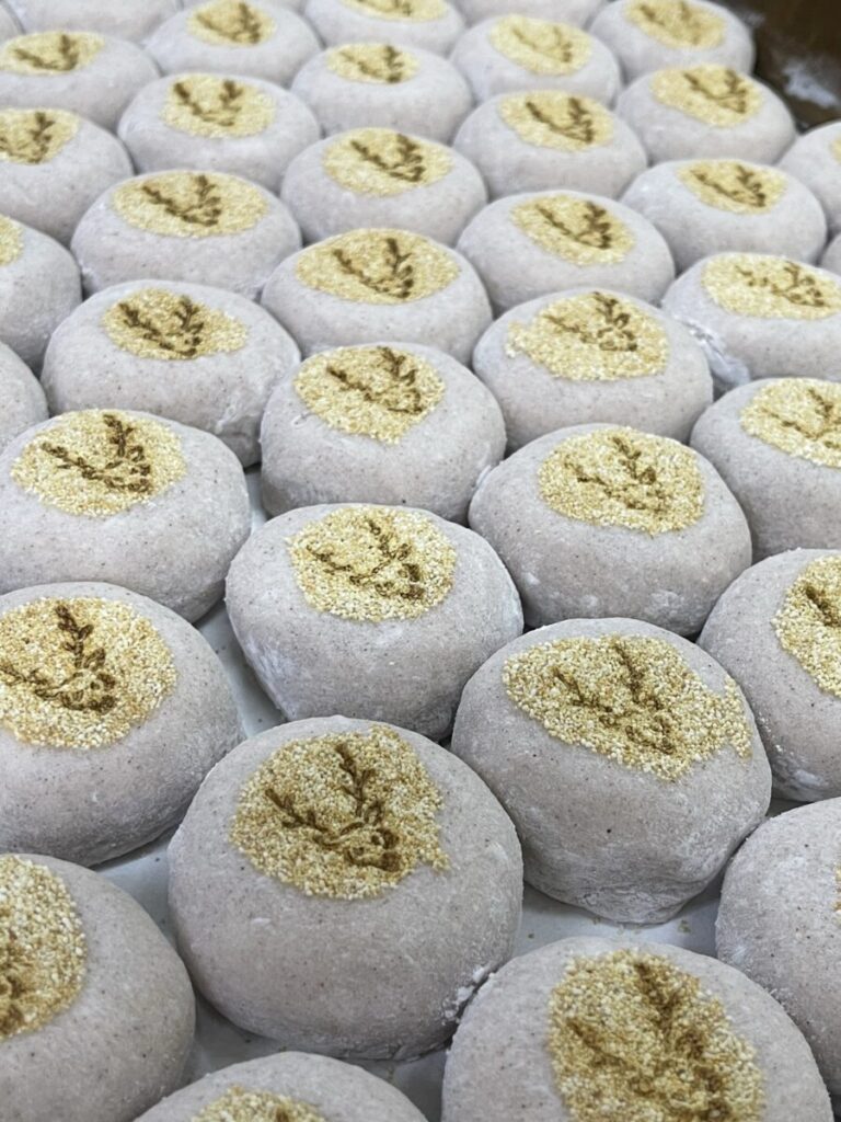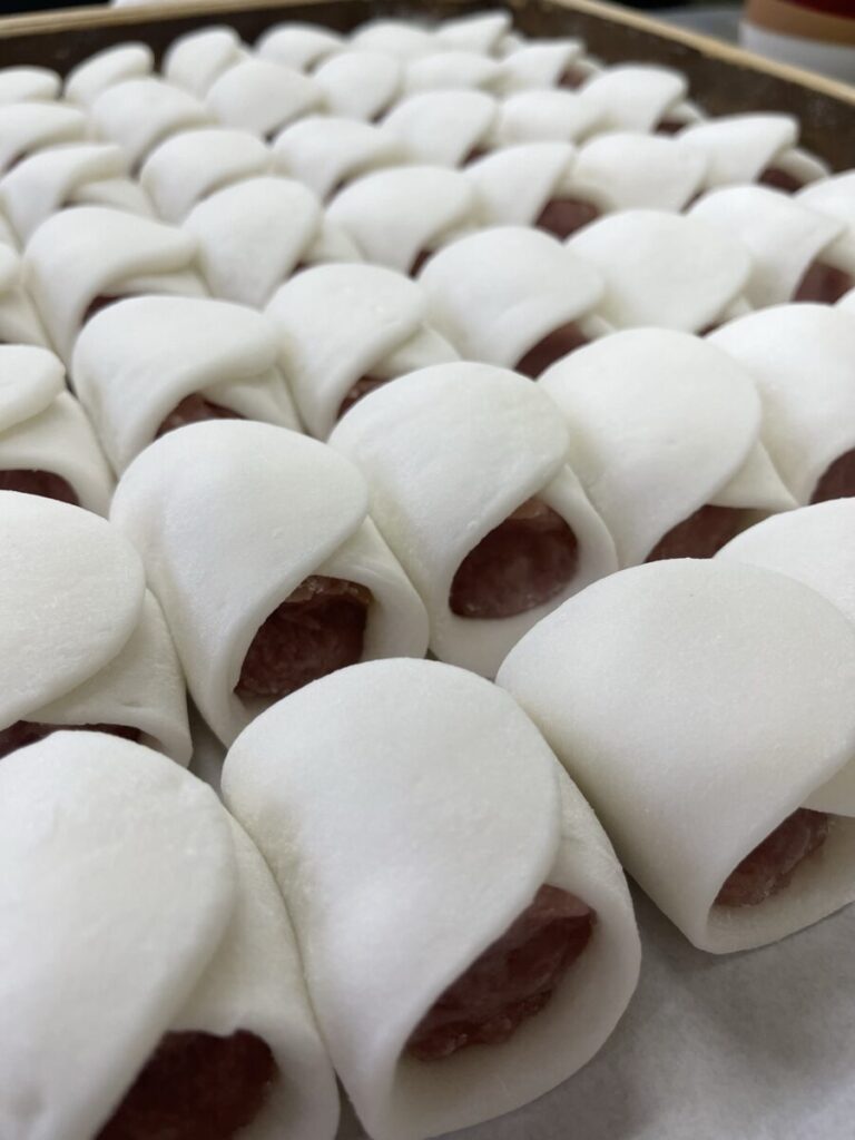 季節に合わせて、こうしてあんの色をかえていく「羽二重巻」は羽二重餅とは違って焼印を施しません。