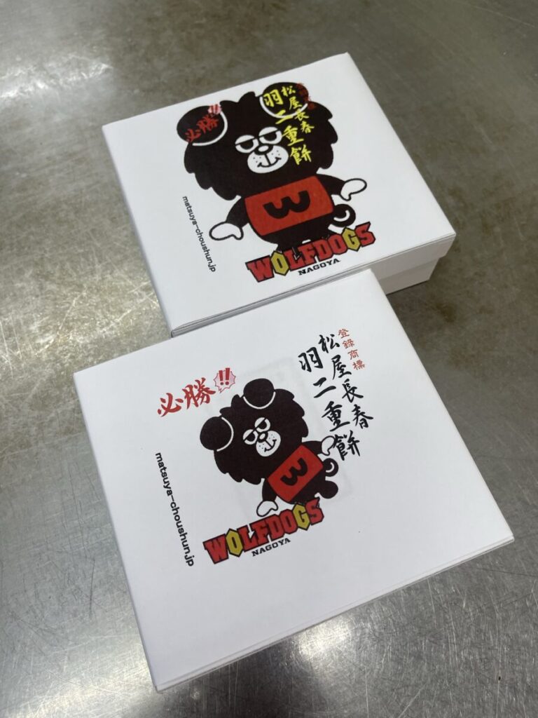 包装はウルフドッグス名古屋のウルドくんをデザインしたもの。