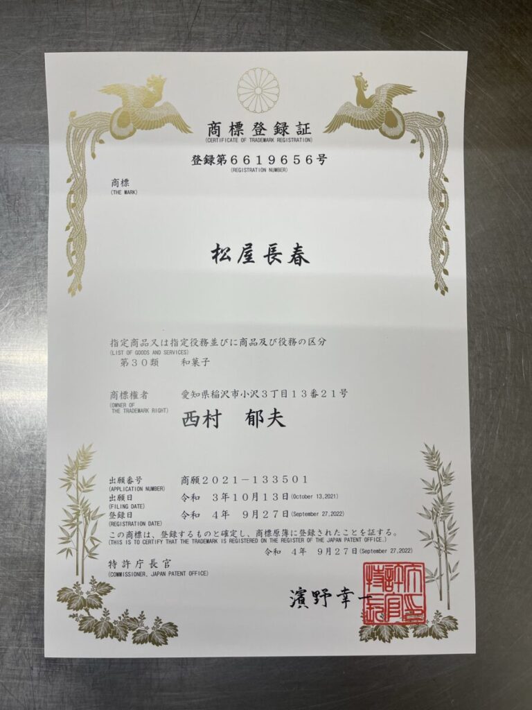 「松屋長春」という名前の商標を特許庁に申請し登録していたのですが、10年という登録期間を過ぎてしまっていたのに全く気づかず、知らないうちに失効してしまっていました。