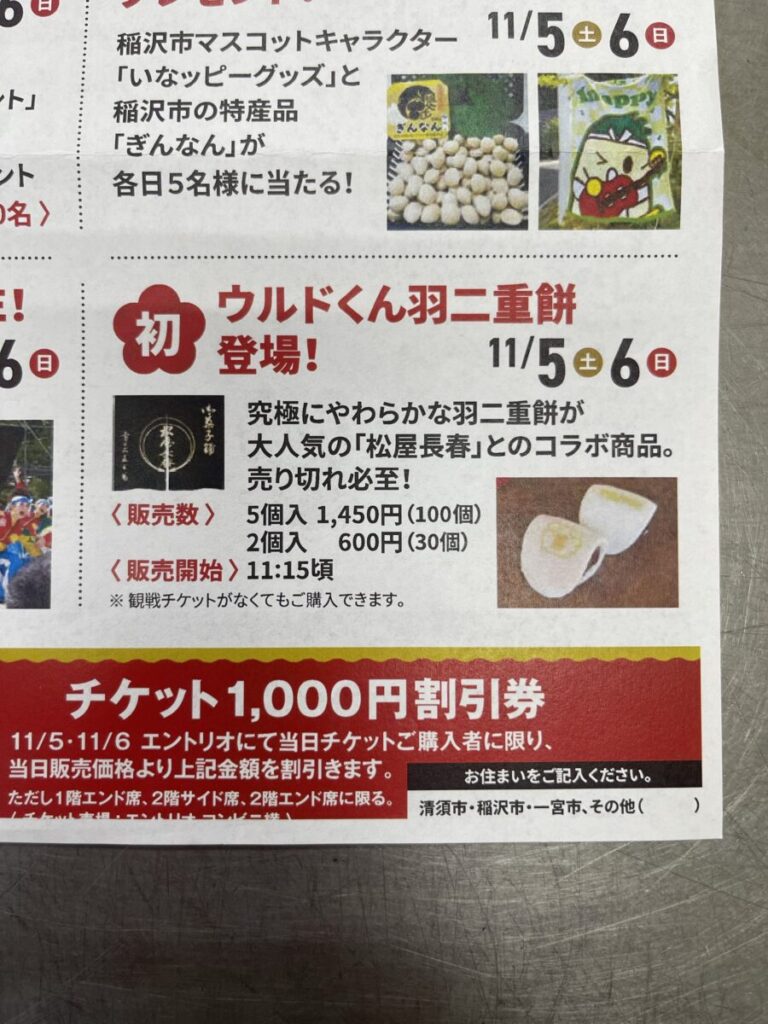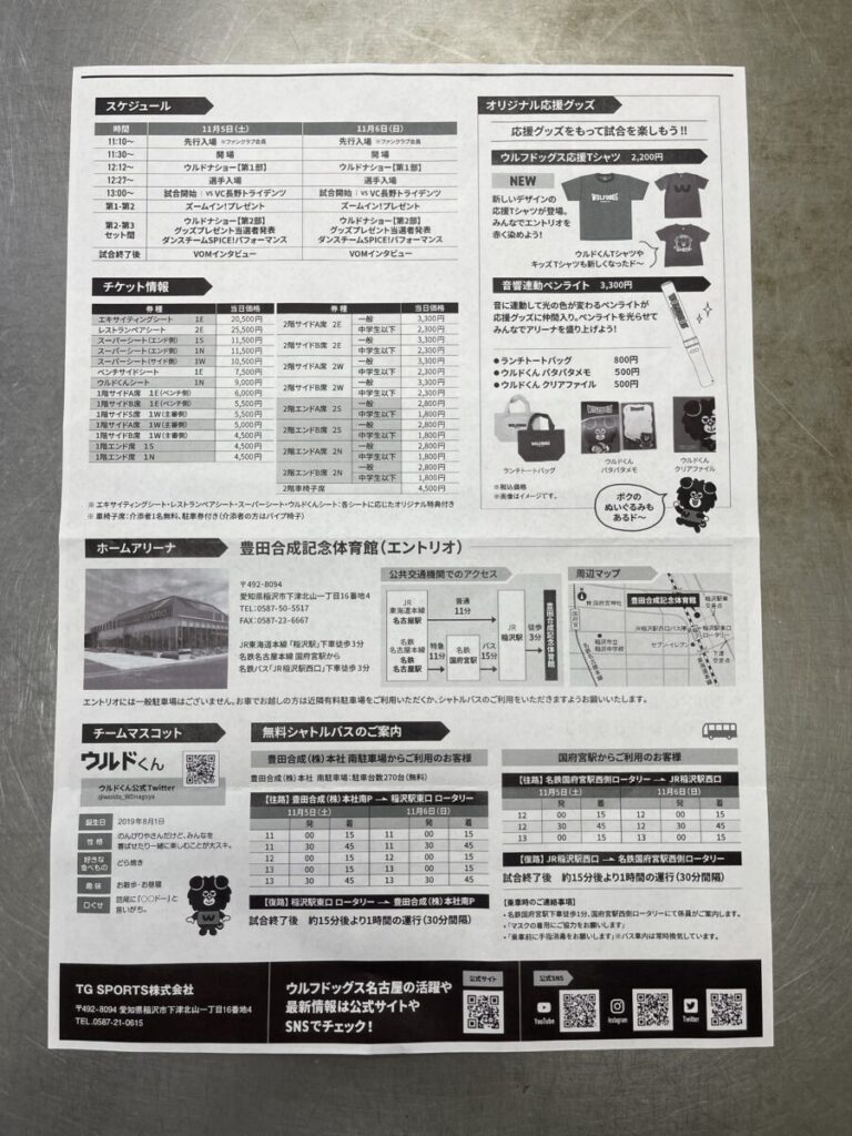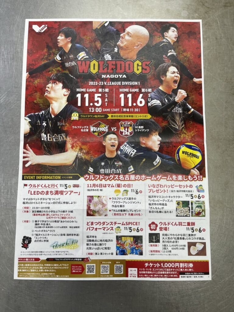 ウルフドッグス名古屋の試合の案内チラシに松屋長春の特別販売のご紹介も載せていただきました。