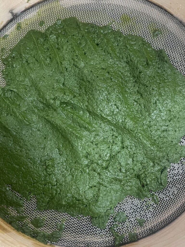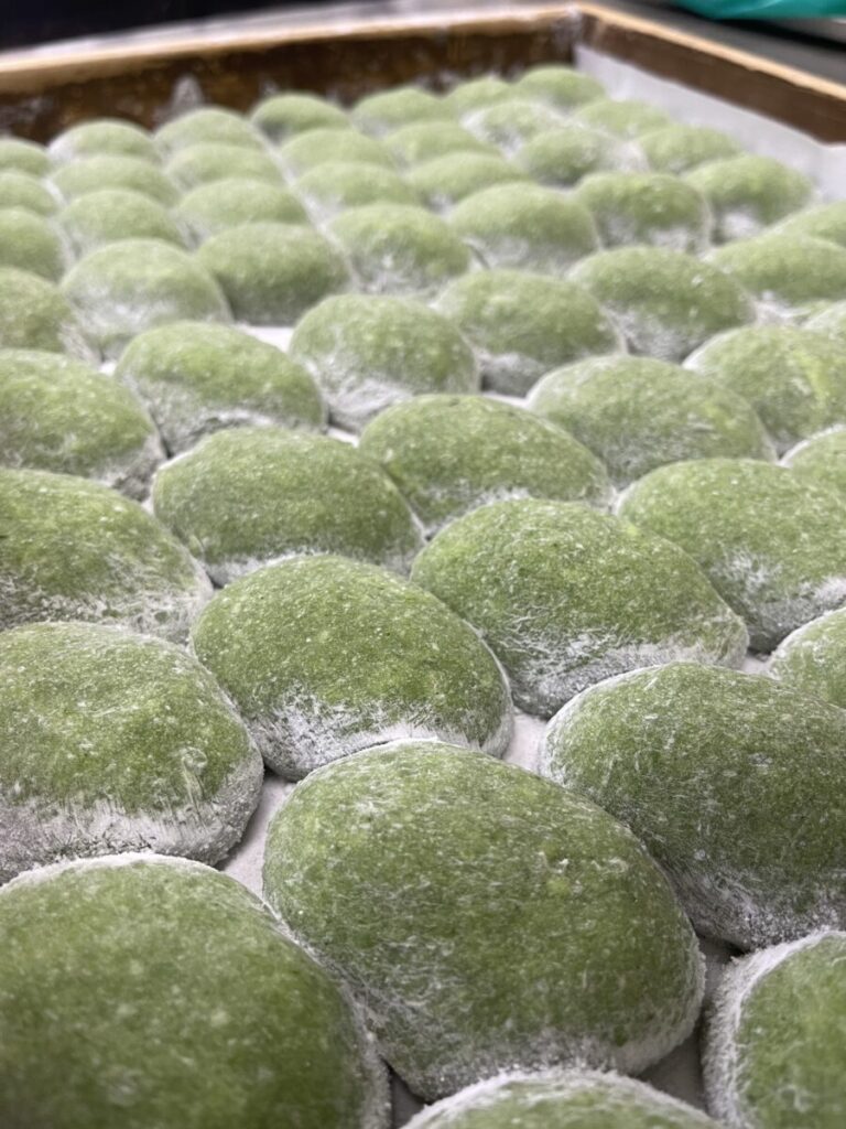 よもぎを大量に投入してこの色合いまで高めているので、しっかりとした香りがお召し上がりいただきました方々の鼻腔を優しくくすぐってくれると思います。