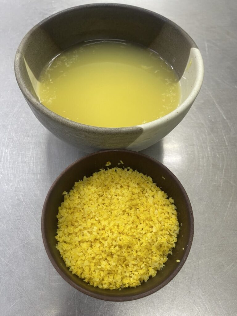 レモンの果皮、果汁をたっぷりと含ませ、しっとりとさっくりと仕上がるように留意しながらゆっくりゆっくりと火を入れるようにしています。