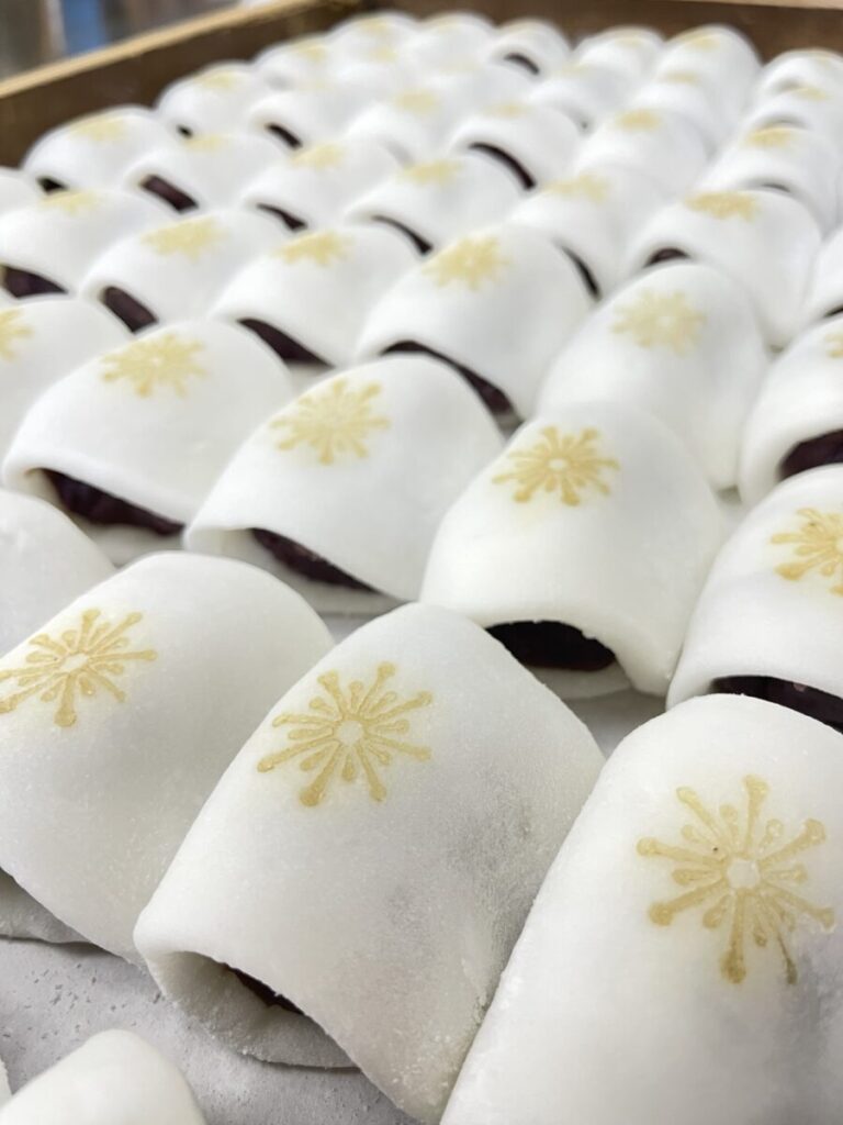 松屋長春の羽二重餅の焼印が「青海波」から「花火」へとバトンタッチいたしました。