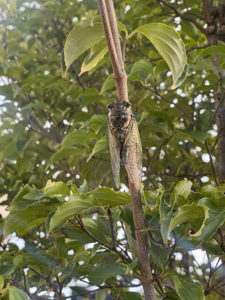 別の日にまたミンミンゼミを見つけました。今度はしっかりとした、大人びたミンミンゼミでした。(同じ蝉だったりして。笑)