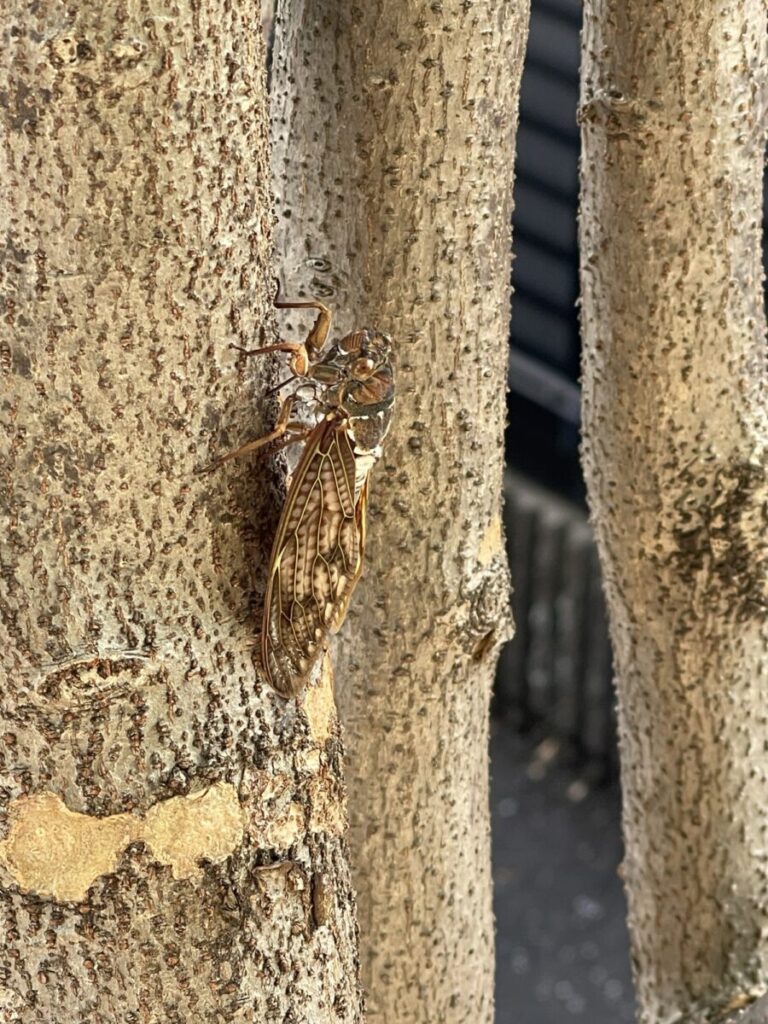 先日、7年を経てやっと地表に出たばかりのミンミンゼミを見つけました。
