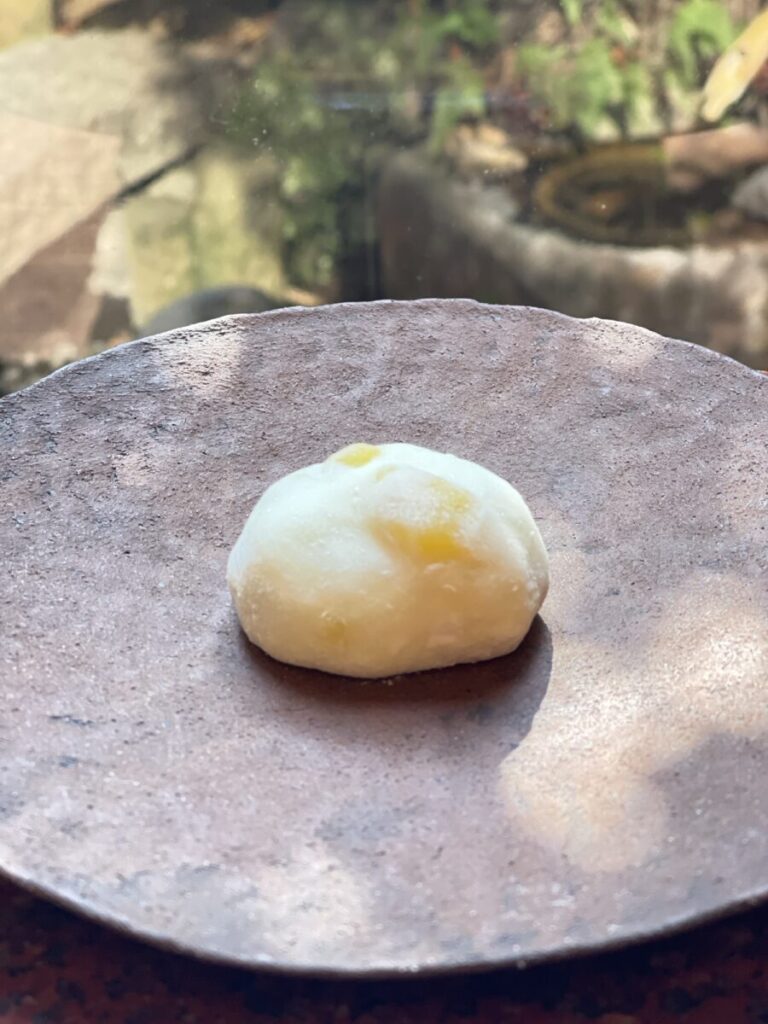岩のようなゴツゴツとした外観からは想像できない羽二重餅のやわらかさがありますので、そんなところもこの「栗香餅」の面白さなのかもしれません。