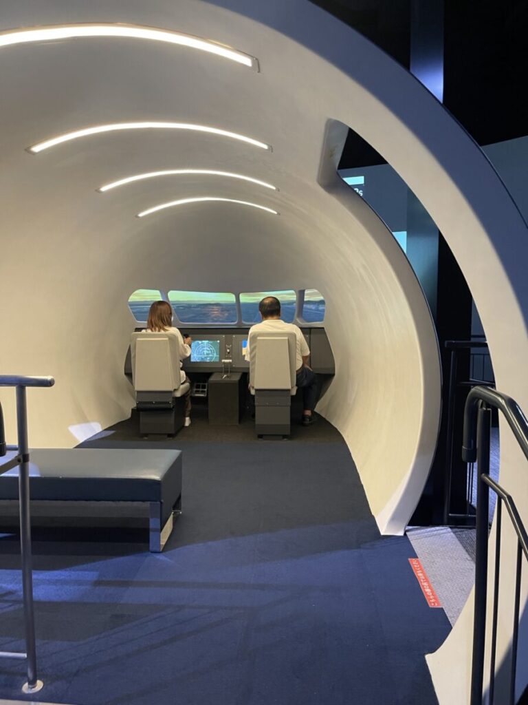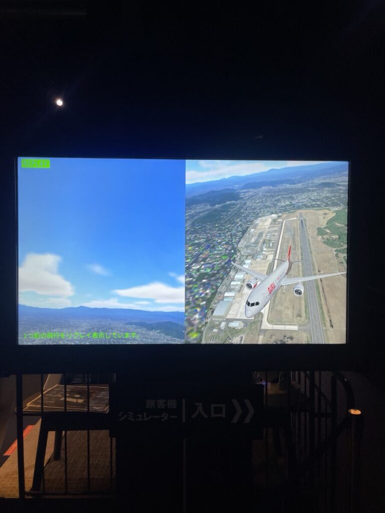 中でもとても面白かったのが、シミュレーションでジャンボ機とアクロバット飛行機に乗れたこと。実際にどちらもトライしましたが、最高点をもらうことができました。さすがに鼻の穴が思いっきり膨らみました。笑
