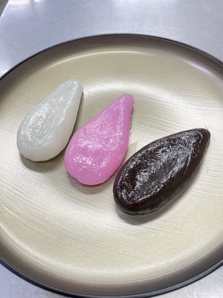 ご担当の三人の先生より賜りましたのは羽二重餅製、薯蕷製、そして干菓子2種(種合わせと和三盆の打物)となります。