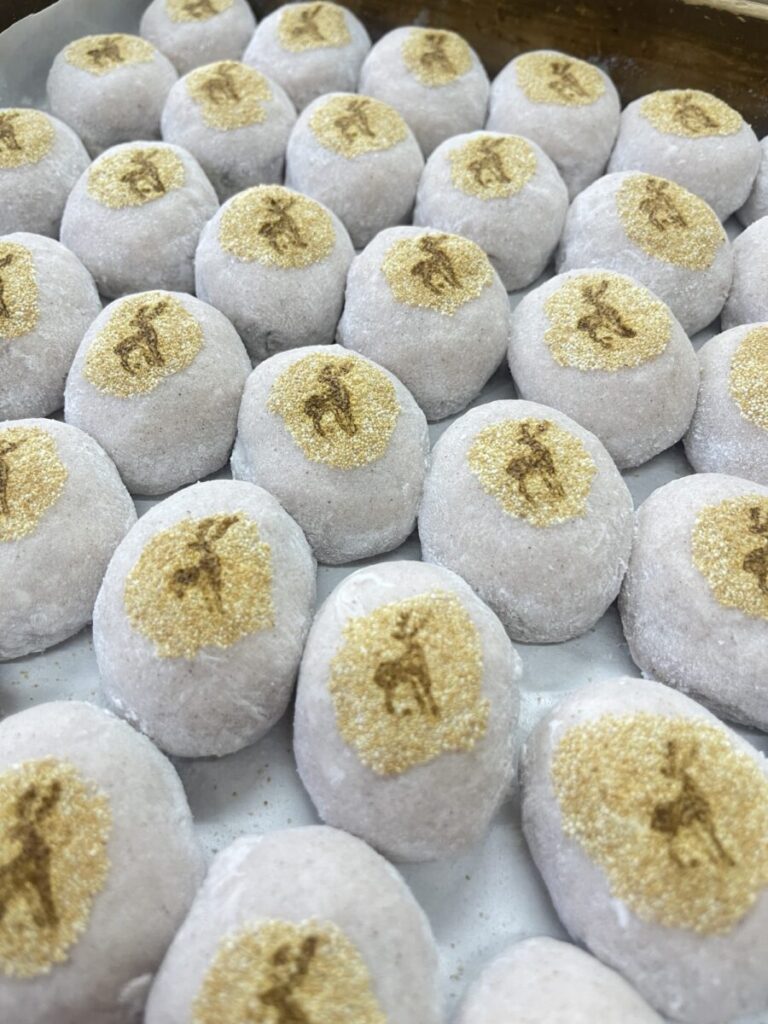 「もろこし粉」という粉は「たかきび」という雑穀を挽いたものなのですが、この色合いがちょうど秋を表現するのにぴったりな色合いなのです。
