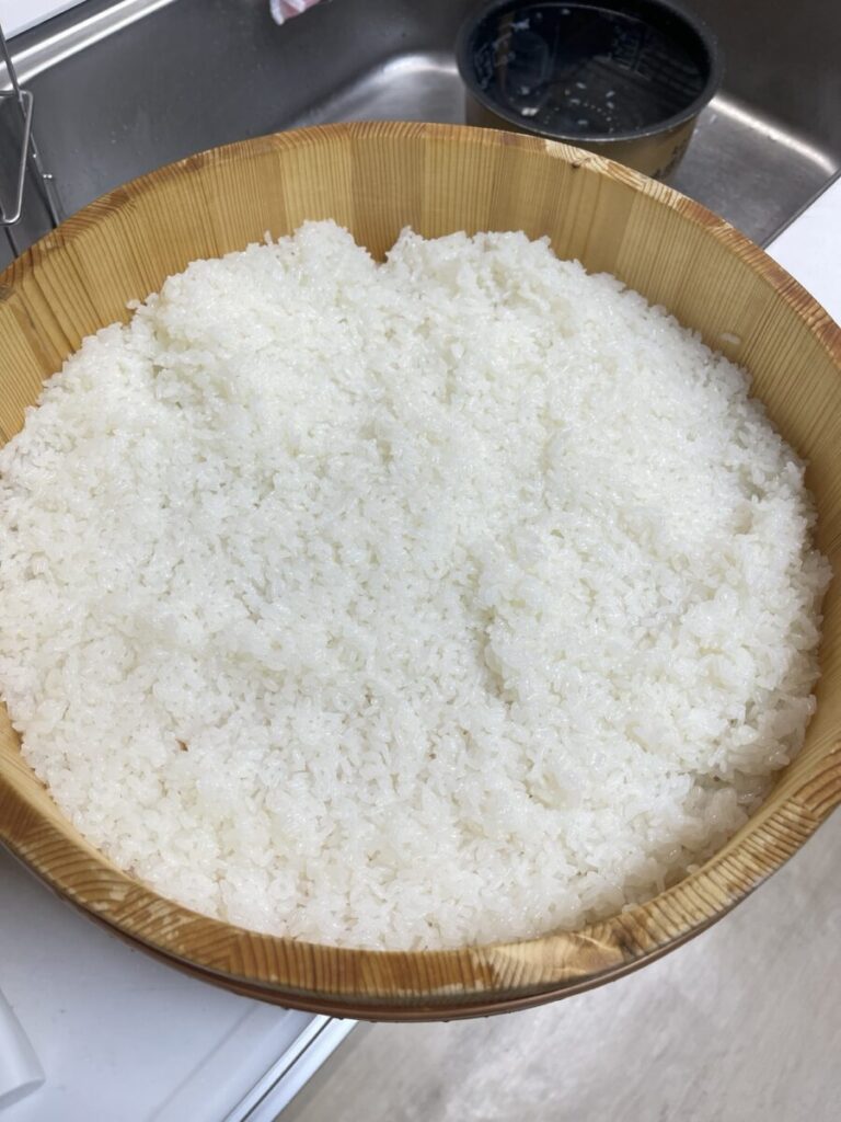 最後の日。「パパ、最後は手巻き寿司が食べたい!」と言うので、夕刻からせっせとつくりました。赤酢が無くなってしまった今回は純白の酢飯で用意しました。