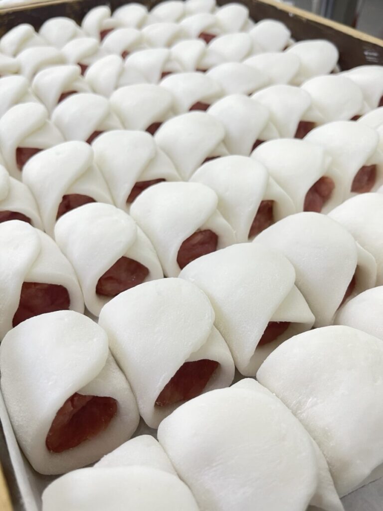 木々の紅葉の時期を少し前に控えた、ちょうどこのいいタイミングで「羽二重巻」のあんがプレーンから紅色に変わりました。