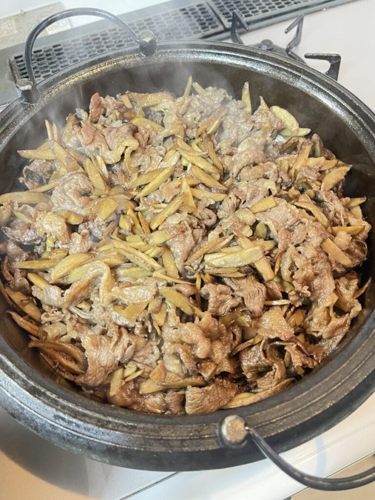 ごぼうをたくさん買ったので、飛騨牛の切り落としを使ってすき焼きをつくりました。