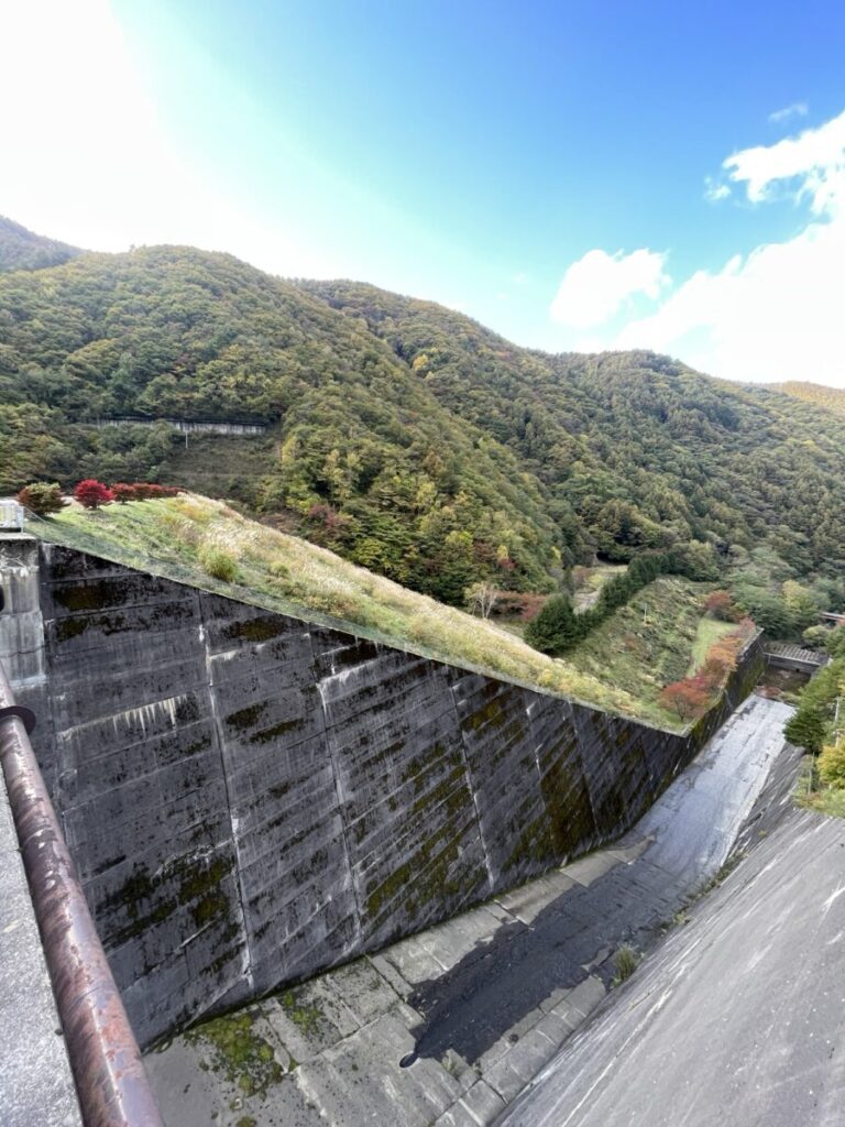なのでダム上部の通路が芝(草かもしれない)に覆われていて、随分長きに渡って侵入禁止の状態が続いている事が刹那にわかった次第です。