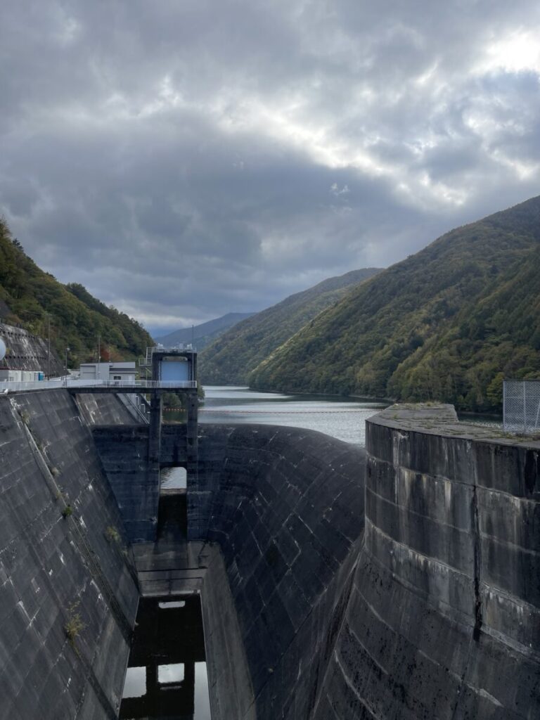 塩尻市に位置するロックフィル形式のダムです。割と小さなダムでして。見学する場も非常に少なかったので新鮮な山の空気を吸いながらササッと写真を撮りました。