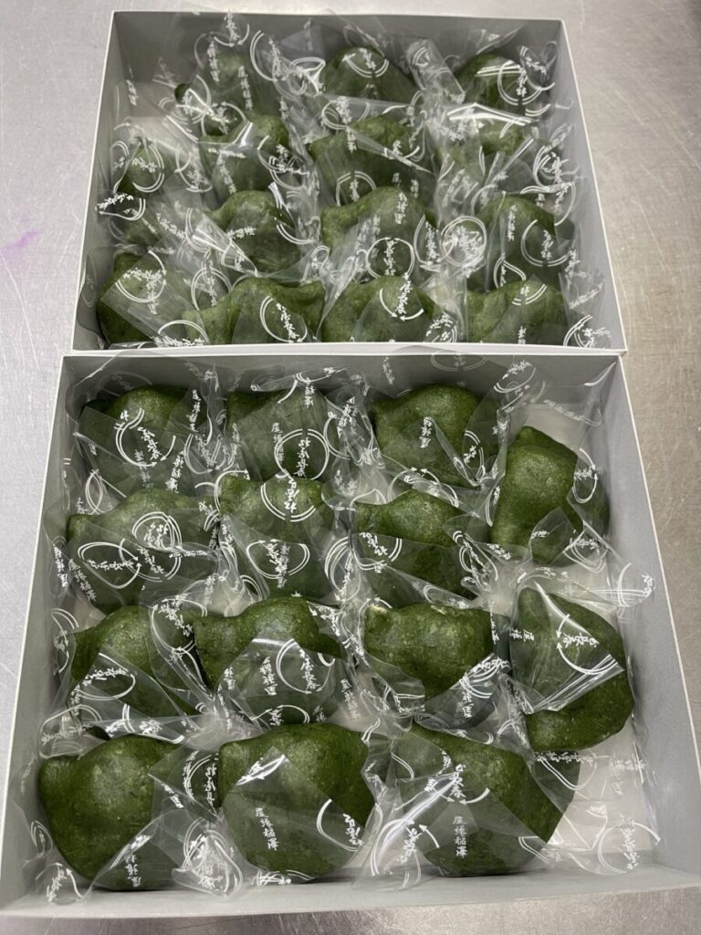 今回は草餅のお尻にきな粉をはらはらと付けてお届けしております。