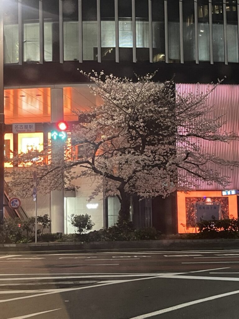 先日、名古屋へ赴いたのですが、名古屋駅すぐのところに桜の木を見つけました。