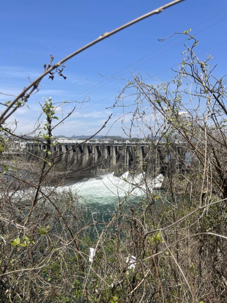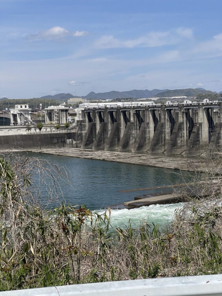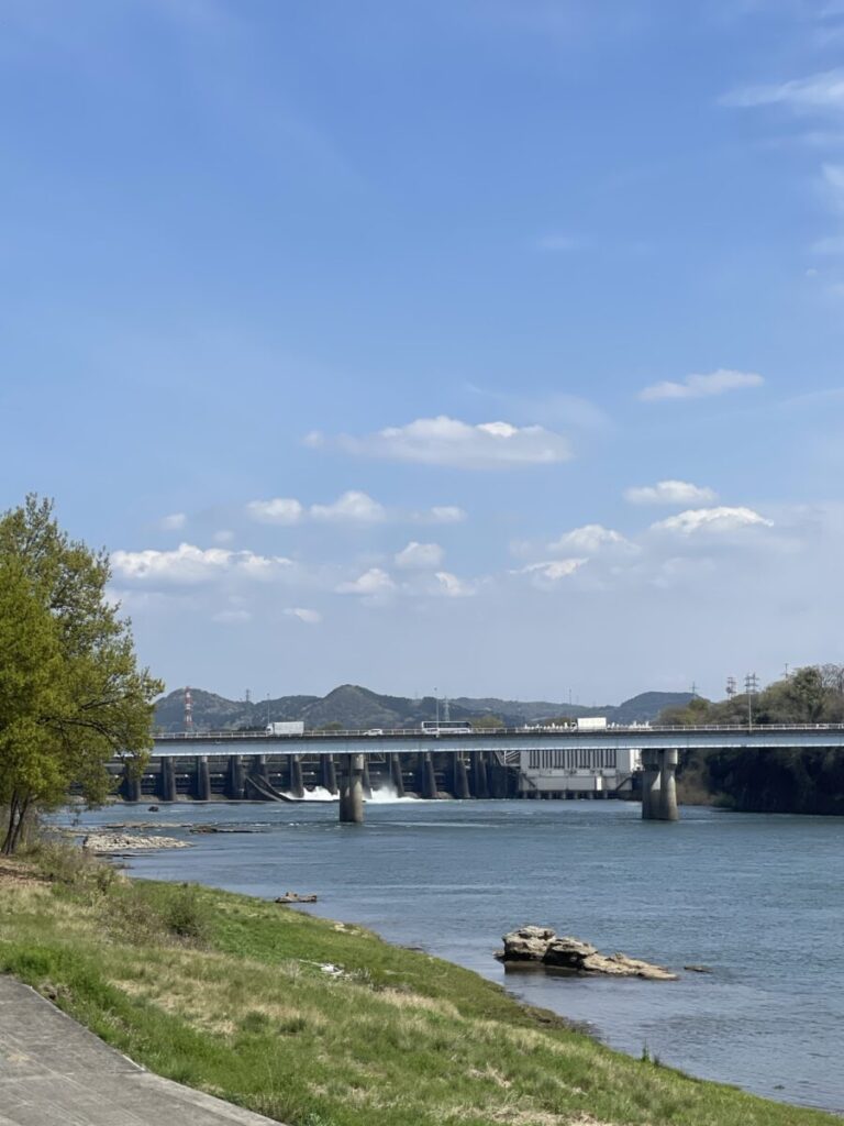 岐阜県美濃加茂市にあり、木曽川の最下流に位置するダム。木曽川を堰き止めて水位を上げ、落差をつくって電力を生み出す仕組みの発電用ダムです。実際には大きな貯水池を持たない形態で、一般的にイメージされる貯水ダムとは少し異なるタイプなのであります。