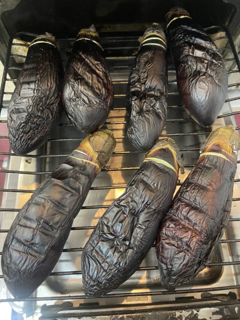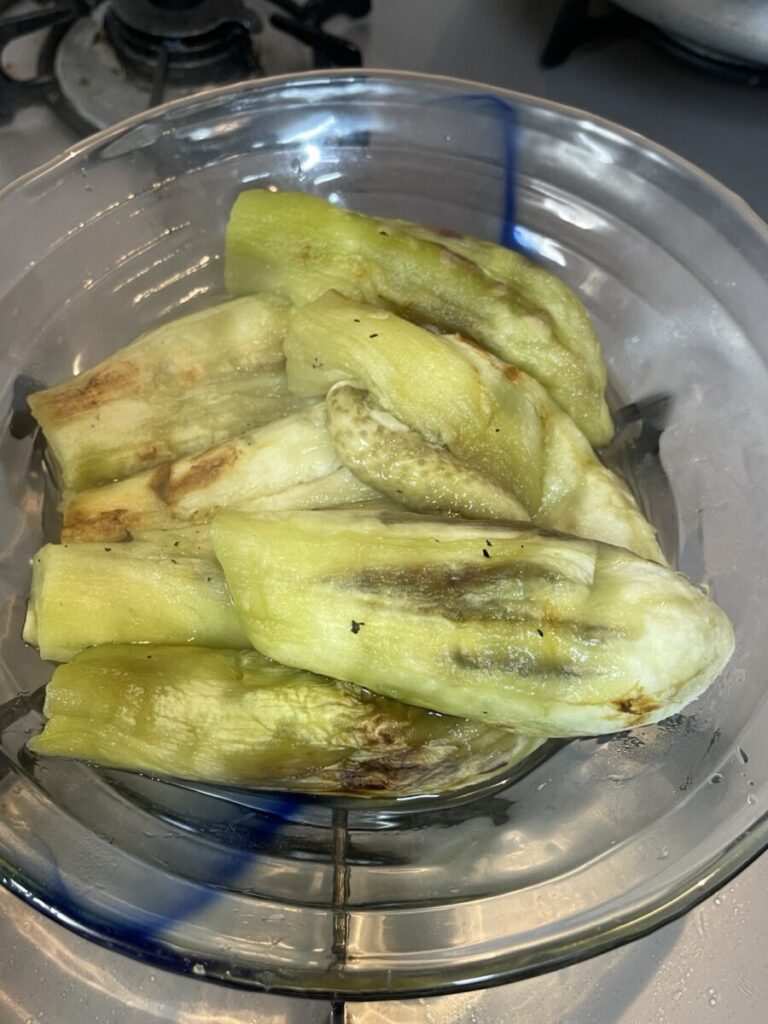 父の友人が持ってきてくださった新鮮な茄子で、焼き茄子をこしらえました。
