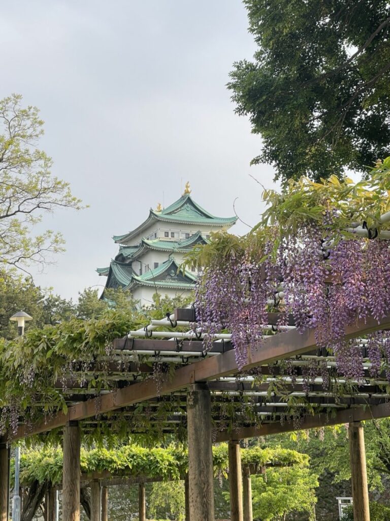 その道中名城公園(名古屋城の公園です)に立ち寄ったのですが、折よく満開を前にした藤の花に出会うことができました。