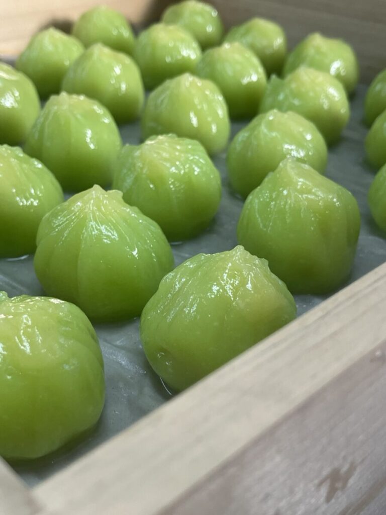 「若みどり」と銘打った練り皮製の和菓子がお店のラインナップに加わっております。