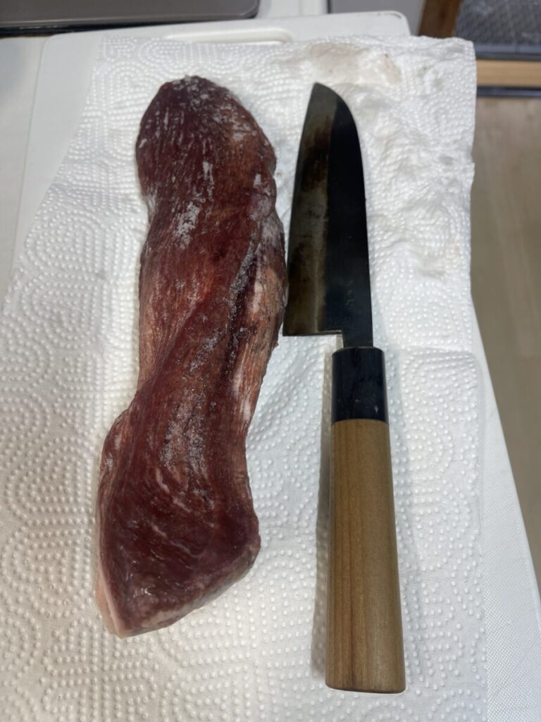 その時、ついでに父が隠し持っていた大きなヒレ肉を息子が見つけて持ってきたので一緒に捌いてやりました。