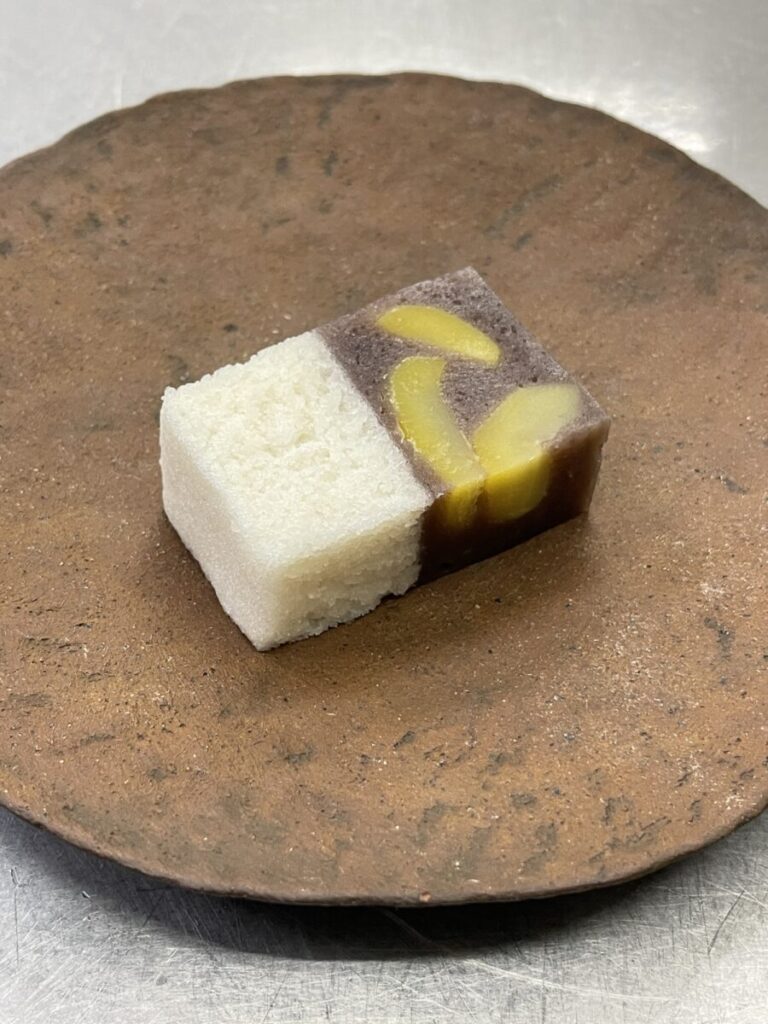 昨日の苦菜と同じくらいのサイズの菊の花の焼印を施した羽二重餅、本日から販売スタートとなりました。これから二週間、こちらの焼印でお願いを致します。ものすごく華奢で可憐な焼印ですので、ぜひご覧下さい。