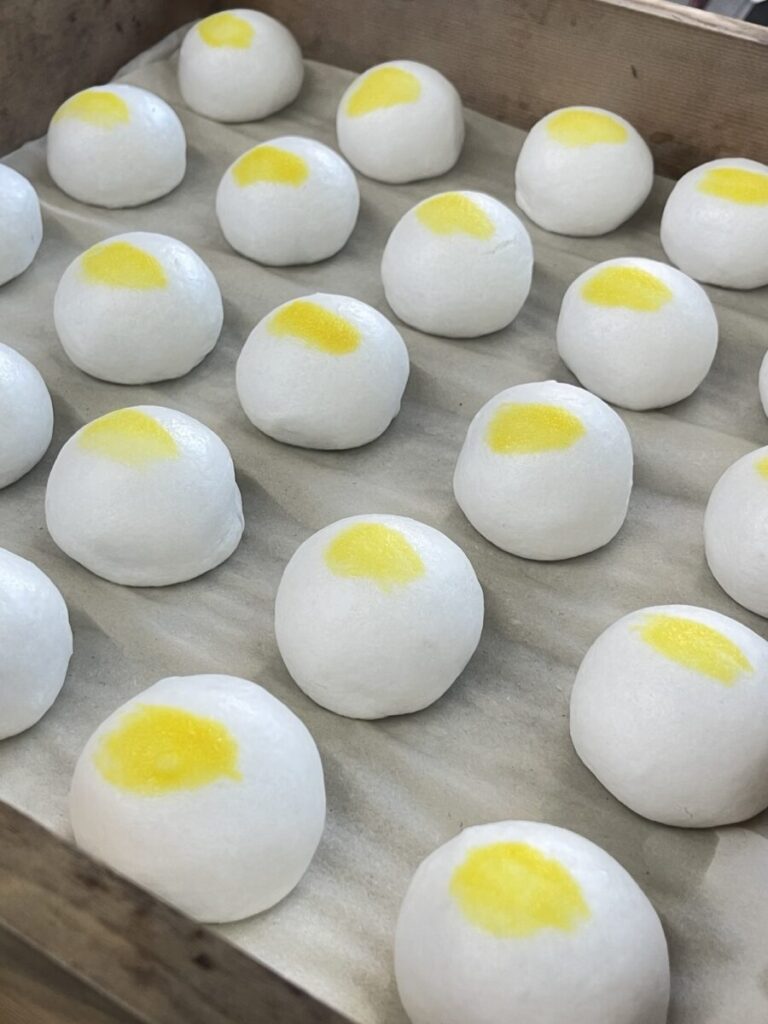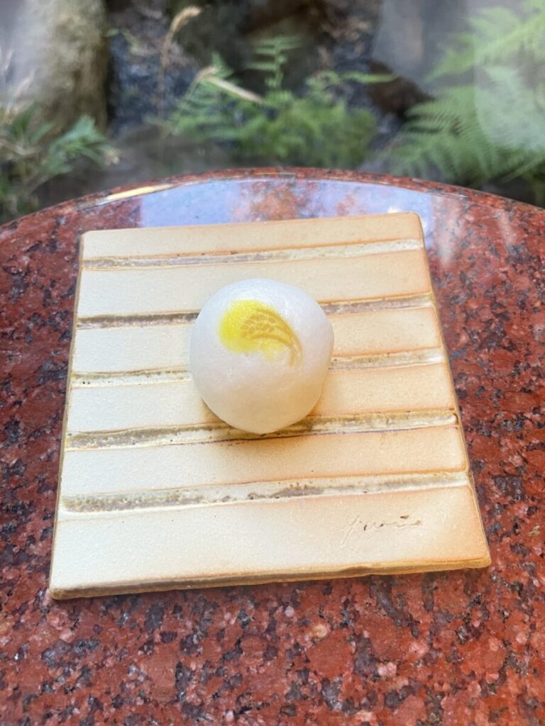 このタイミングで薯蕷製の新作をドロップしました。稲穂の焼印に黄金色の色をあしらってあります。