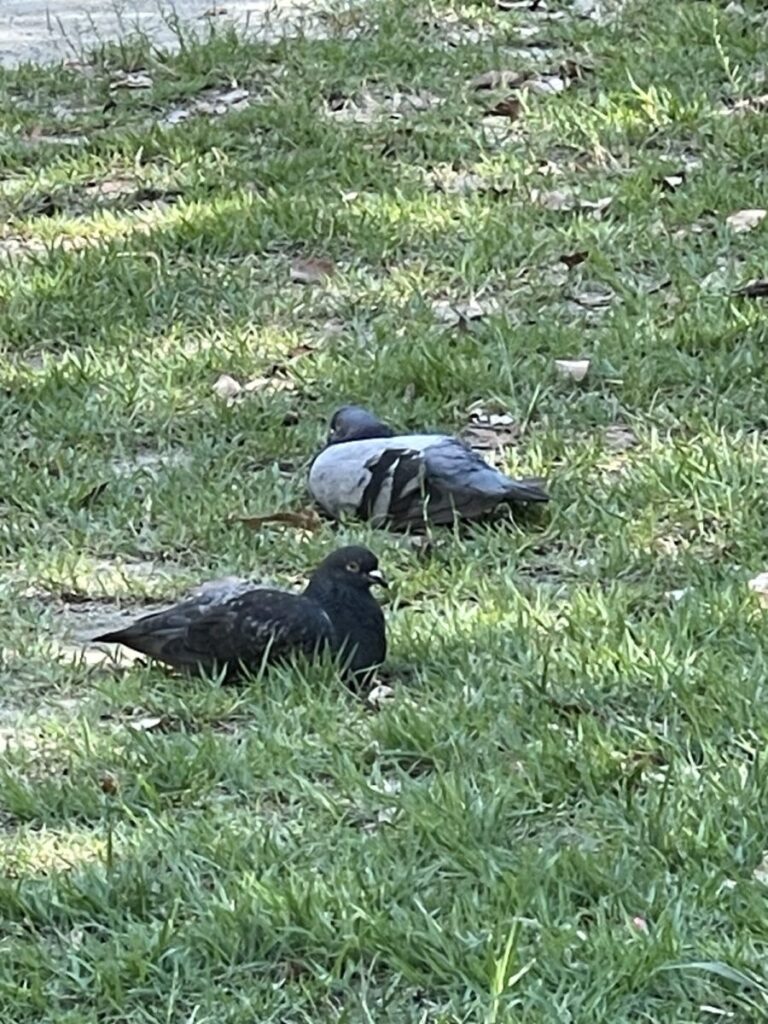 昨日、公園横を歩いていたところ2羽の鳩が草の上で休んでいました。