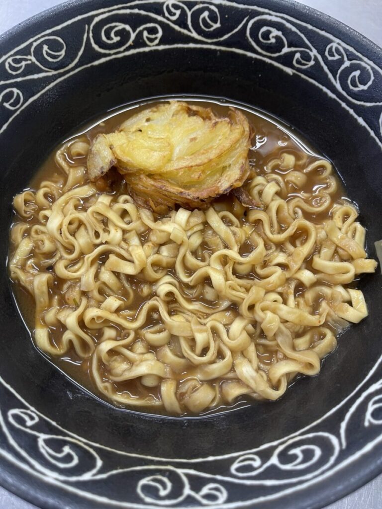 別の日には玉ねぎのかき揚げをササっとつくって入れてみました。